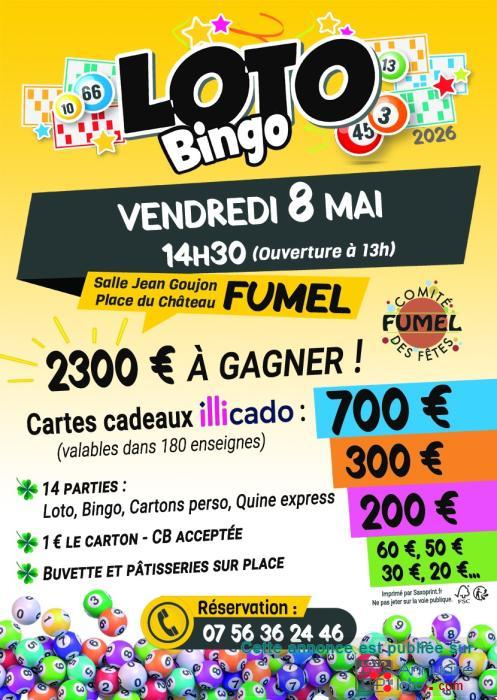 Loto-bingo organisé par le Comité des fêtes de Fumel le lundi 8 mai à la Salle Jean-goujon.