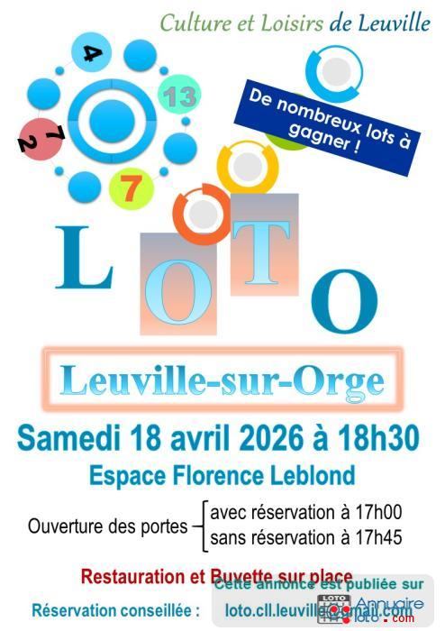 Super loto annuel de Leuville doté de très nombreux lots de qualité. Ambiance sympathique et familiale. 8 parties au total, 26 lots en tout + lots de consolation.
