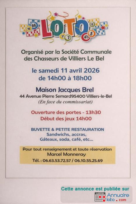 LOTO organisé par la Société Communale des Chasseurs de Villiers Le Bel